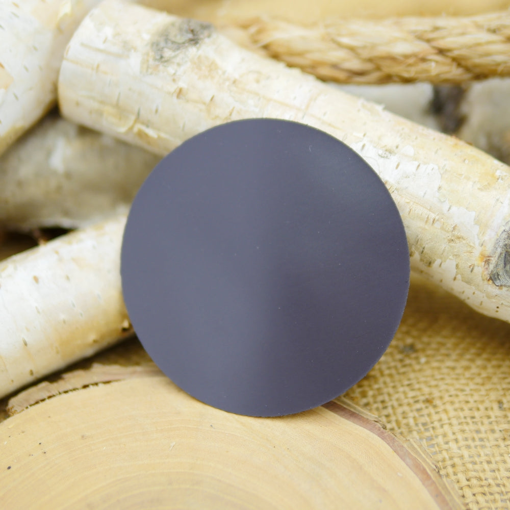 A 3" diameter magnet. White background with black lettering and image. Holds up well to outdoor elements.
