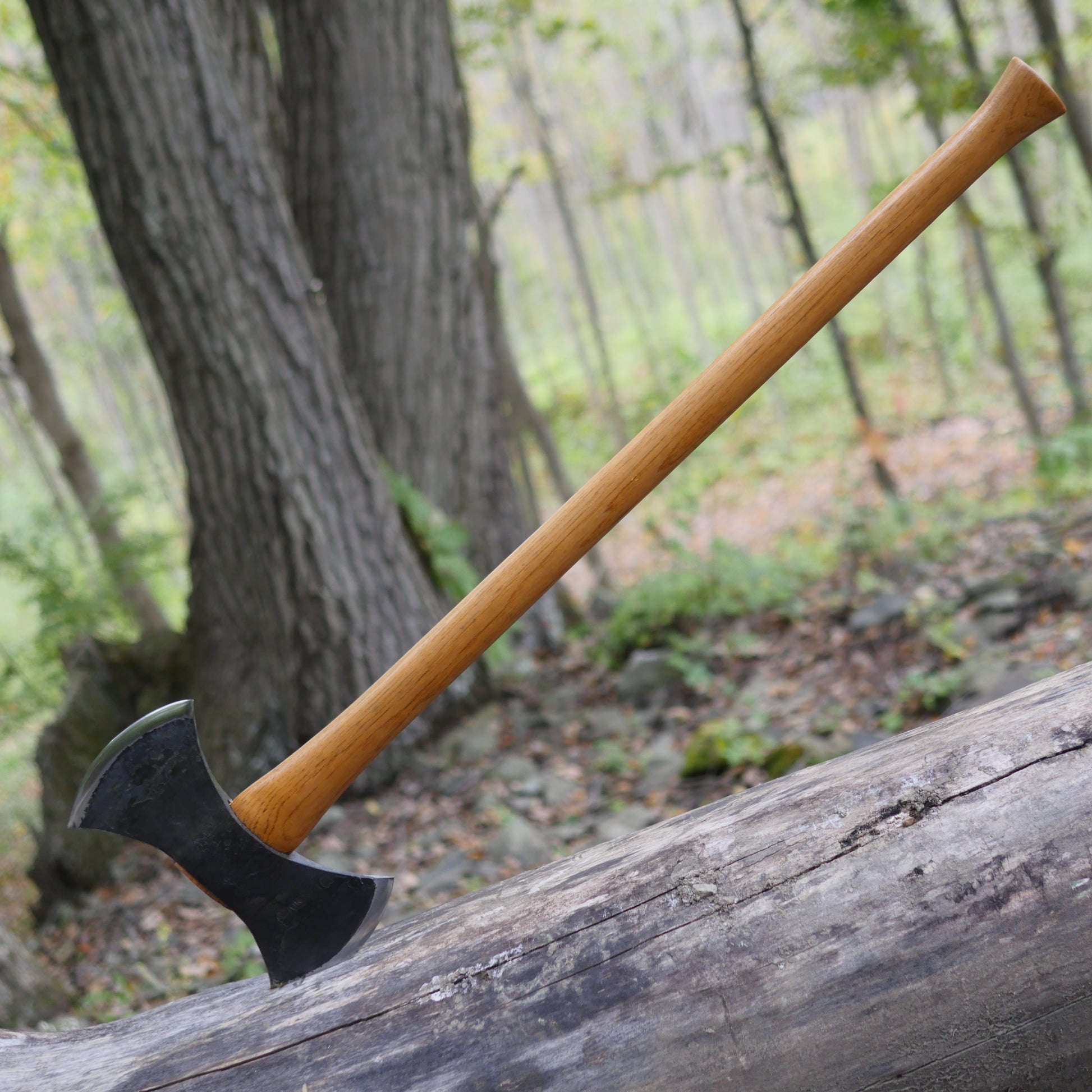This is the Gransfors Bruks Double-Bit Working Axe with the longer handle [35 inch]. These are rare and harder to find than the 29 inch handle "Throwing Axe" version. Theoretically, if you wanted to convert this into a throwing axe, all you'd have to do is saw 6 inches off the handle.