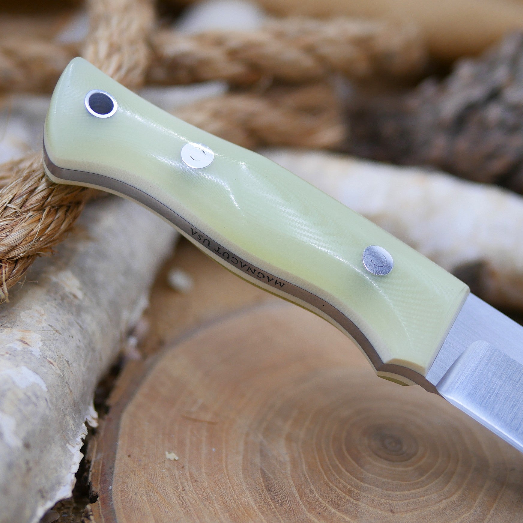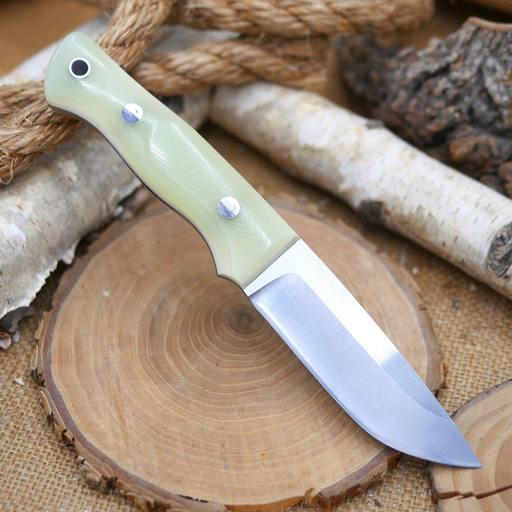 The Huntsman is one of our most popular bushcraft knives. It is designed to handle hunting chores as well as bushcraft tasks; skinning, gutting, woodcarving, batonning logs, shelter building, etc. The drop-point blade has substantial belly curvature and a tall height, useful in various hunting and/or game preparation grips. This is a versatile hunting knife which can be just as useful in the woods in the off-season.