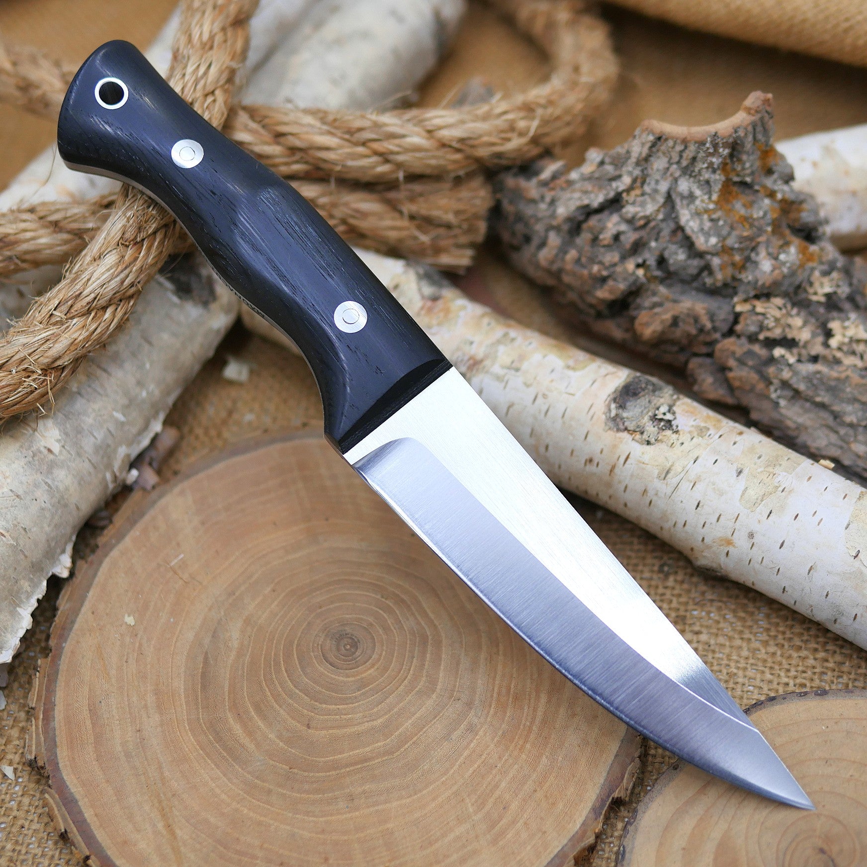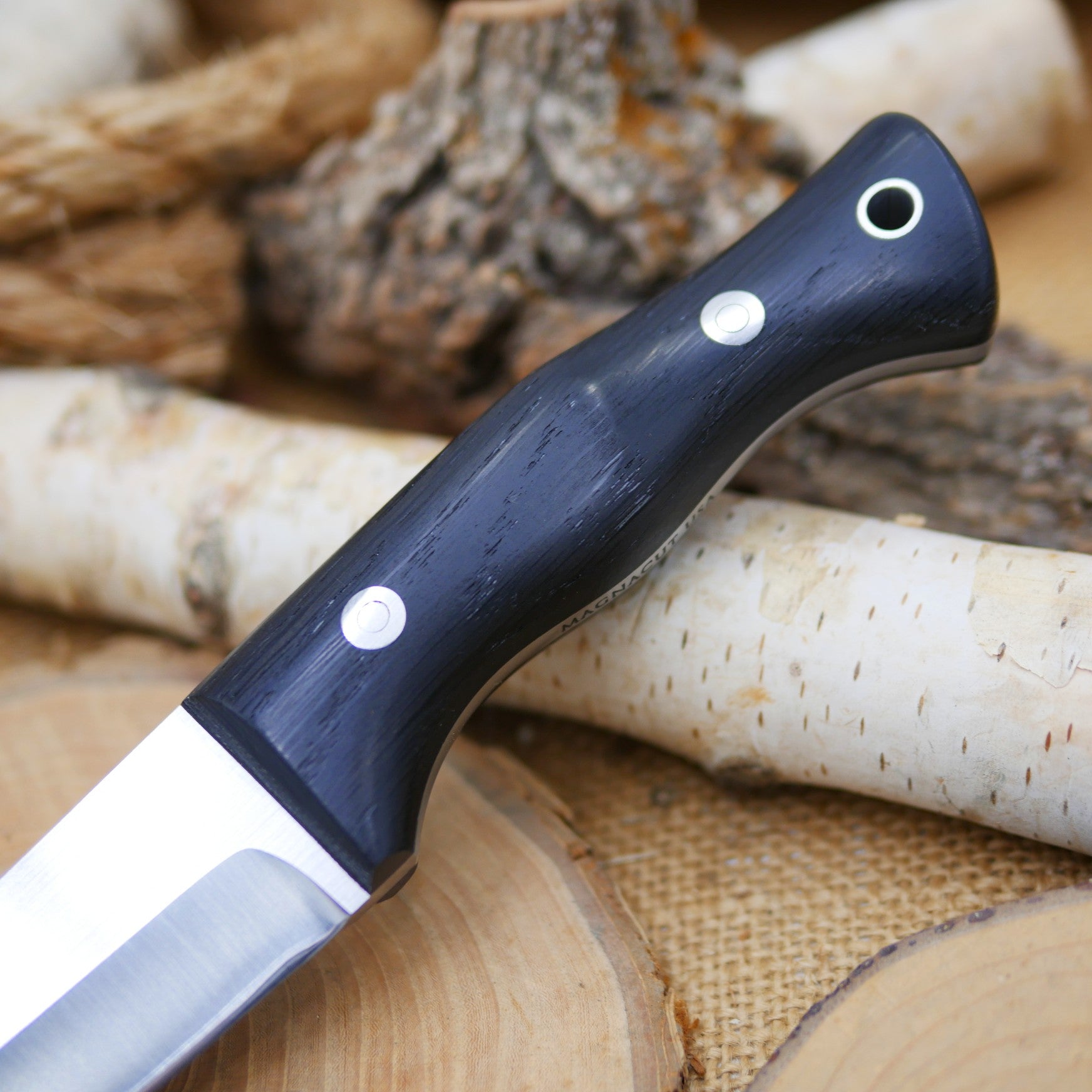 The Tradesman is a bushcraft knife inspired by the fur-trade knives brought to North America by it's early explorers. This knife has a relatively thin and constantly upward-curving edge, making it an excellent slicer. This is essentially a camp kitchen knife and bushcraft knife hybrid, excelling at preparing a stew or building a shelter.