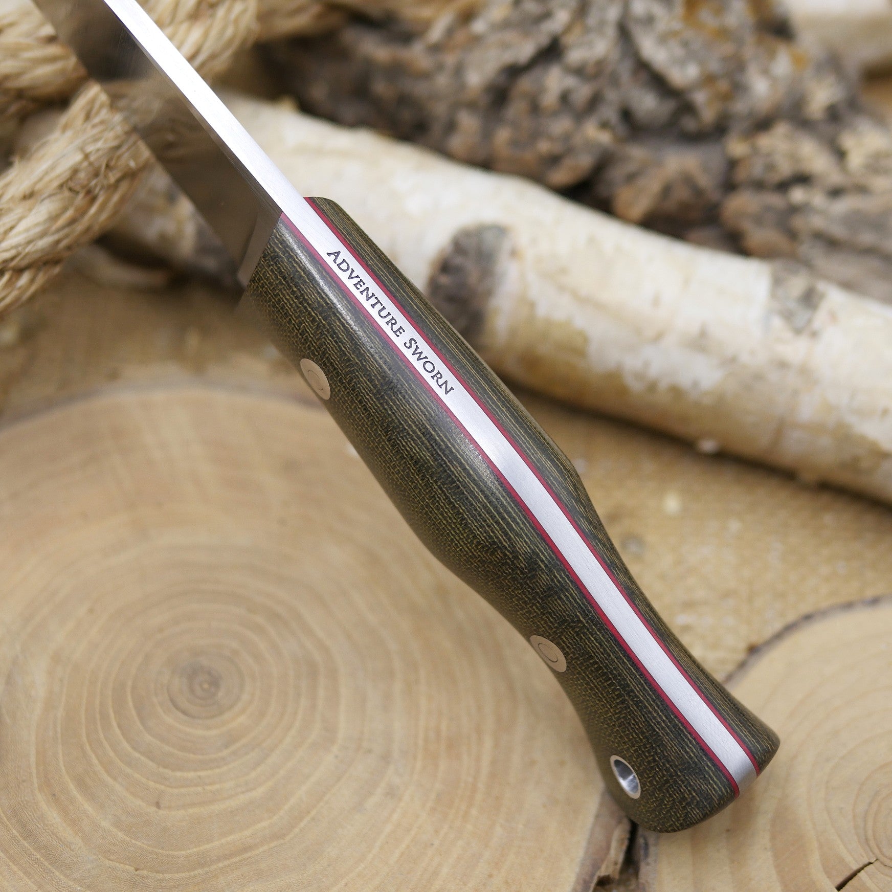 The Tradesman is a bushcraft knife inspired by the fur-trade knives brought to North America by it's early explorers. This knife has a relatively thin and constantly upward-curving edge, making it an excellent slicer. This is essentially a camp kitchen knife and bushcraft knife hybrid, excelling at preparing a stew or building a shelter.