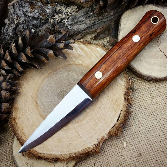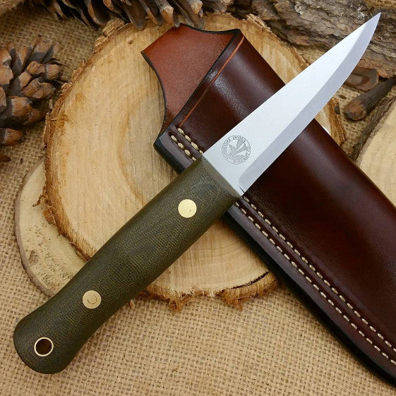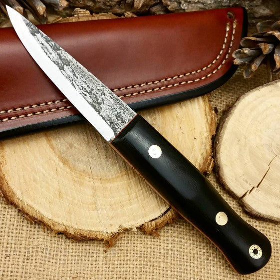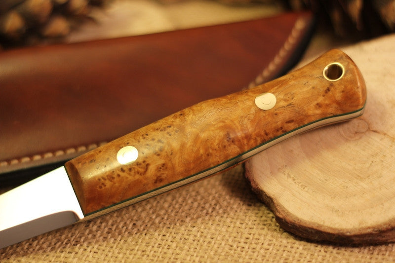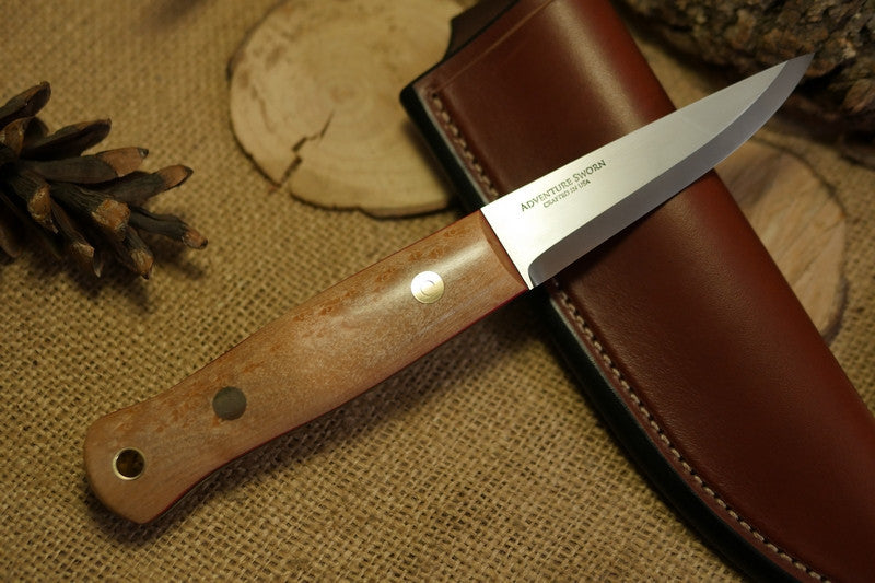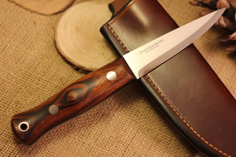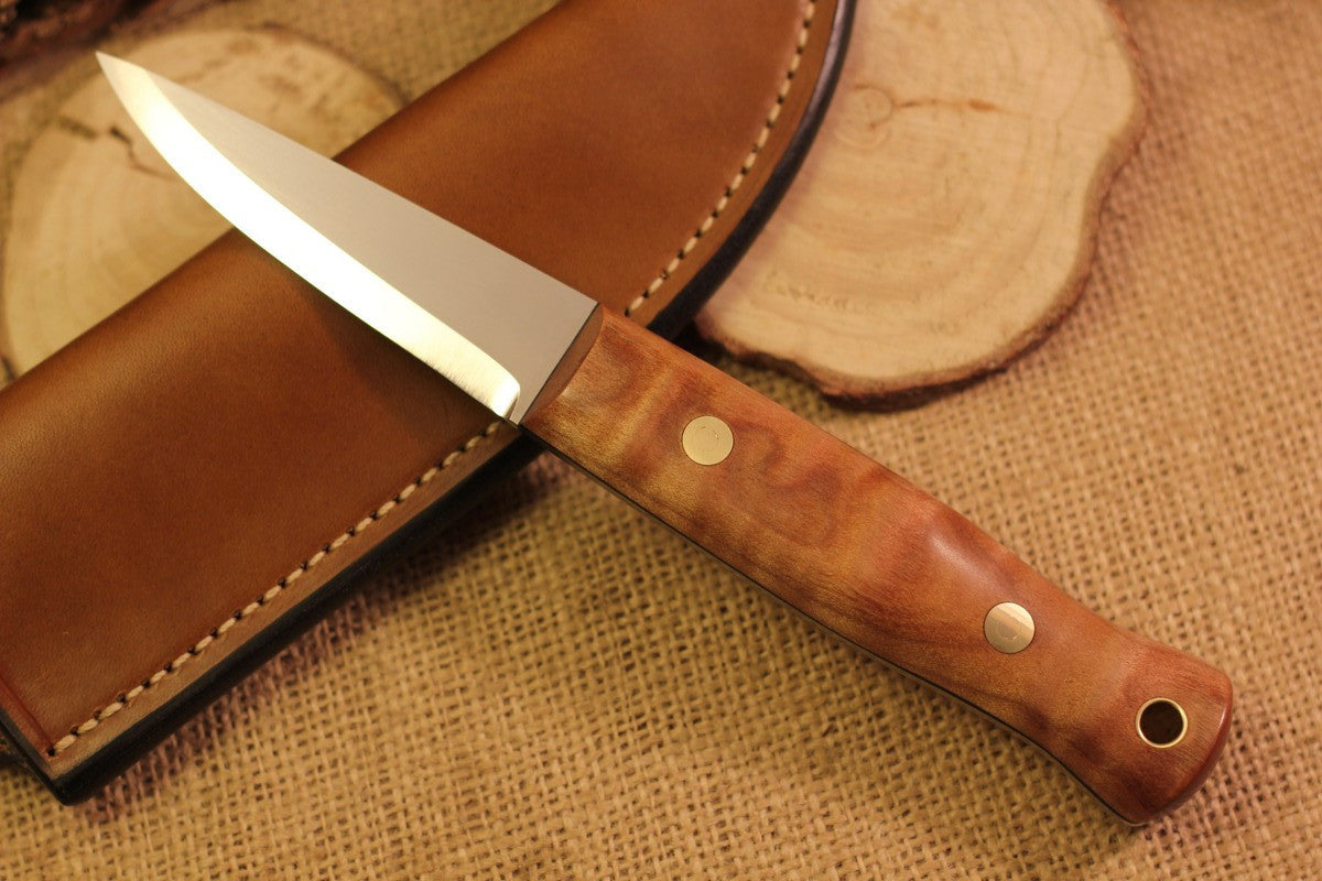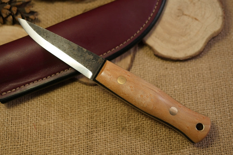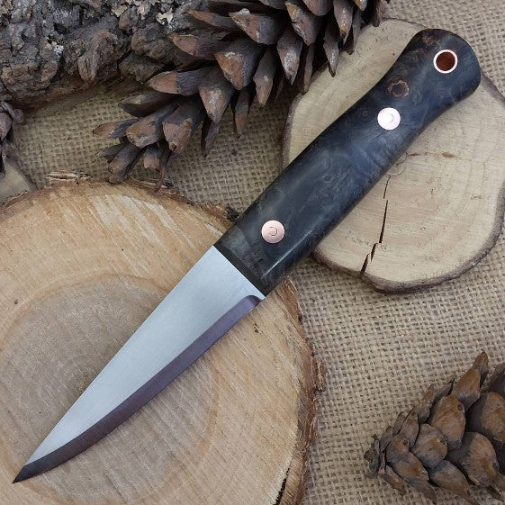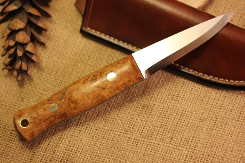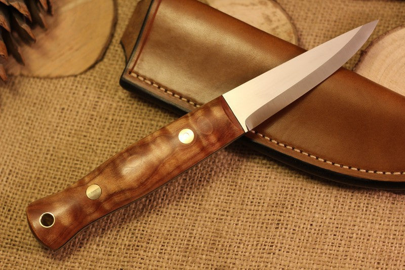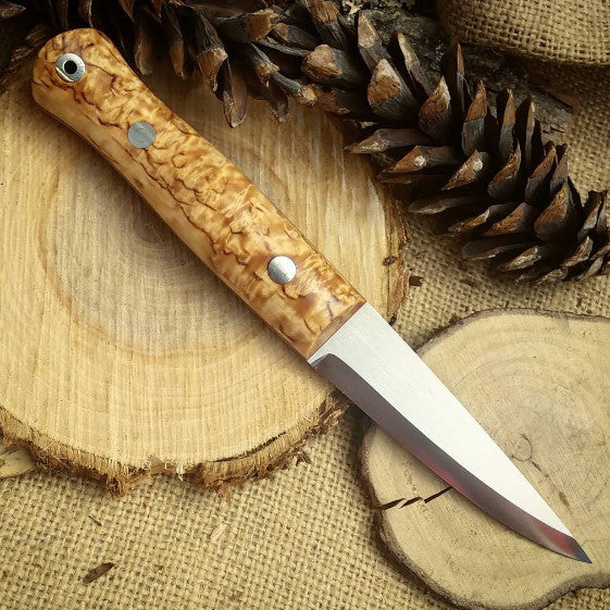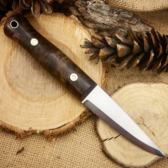 The puukko inspired Woodcrafter is a general bushcraft knife based around fine woodworking. It features a narrow 3-3/4 inch blade with a comfortable coke-bottle contoured handle, allowing for hours of hard work in the forest.