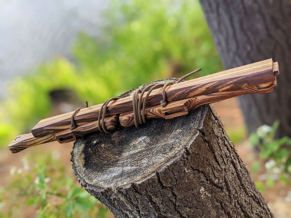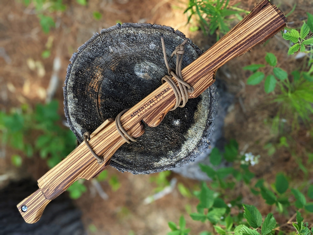 - Closure System: the blade folds into slits cut into the handles, and is kept closed by lashing the crossbar and handles together with the side laces. No tools required for assembly in the woods.