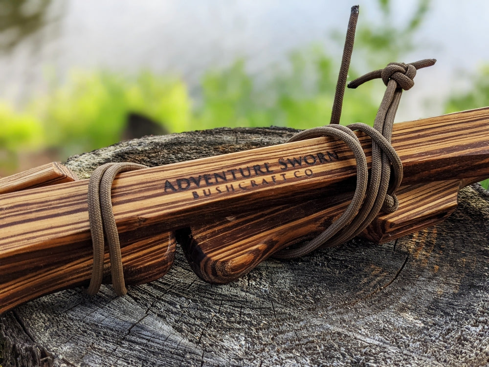 - Tension System: twist style, mil-spec parachute cord with a wooden toggle