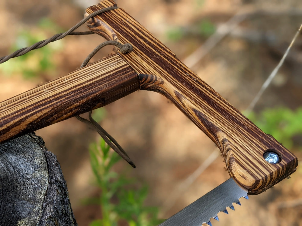 For those who practice bushcraft, cutting tools are essential, and the saw is one of the most useful tools in the woods. A few of the features of our bucksaw include comfortable handle contours, an arched center brace for added cutting clearance, and a blade which folds into the handles for quick & easy field assembly.
